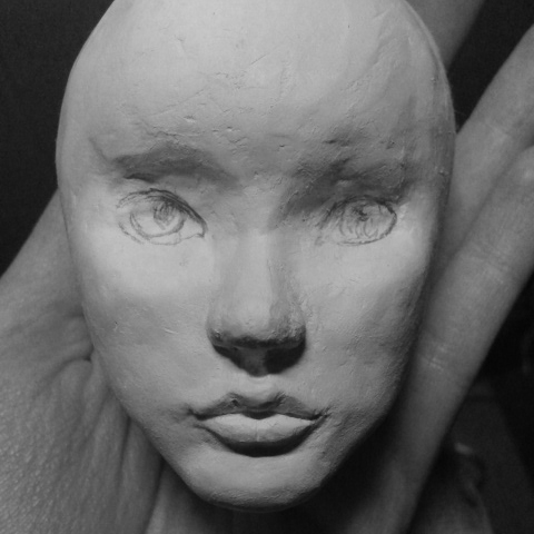 06/03/2013_Lijar, pulir, dar forma. Ignorad los cutre ojos dibujados xD Tengo ganas de abrirle la cabeza para poder trabajar los ojos... pero antes de eso tengo que acabar de arreglar la forma de la cabeza/cuello.